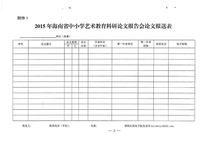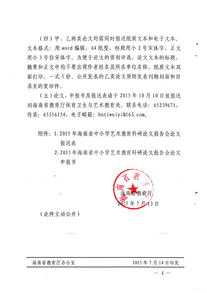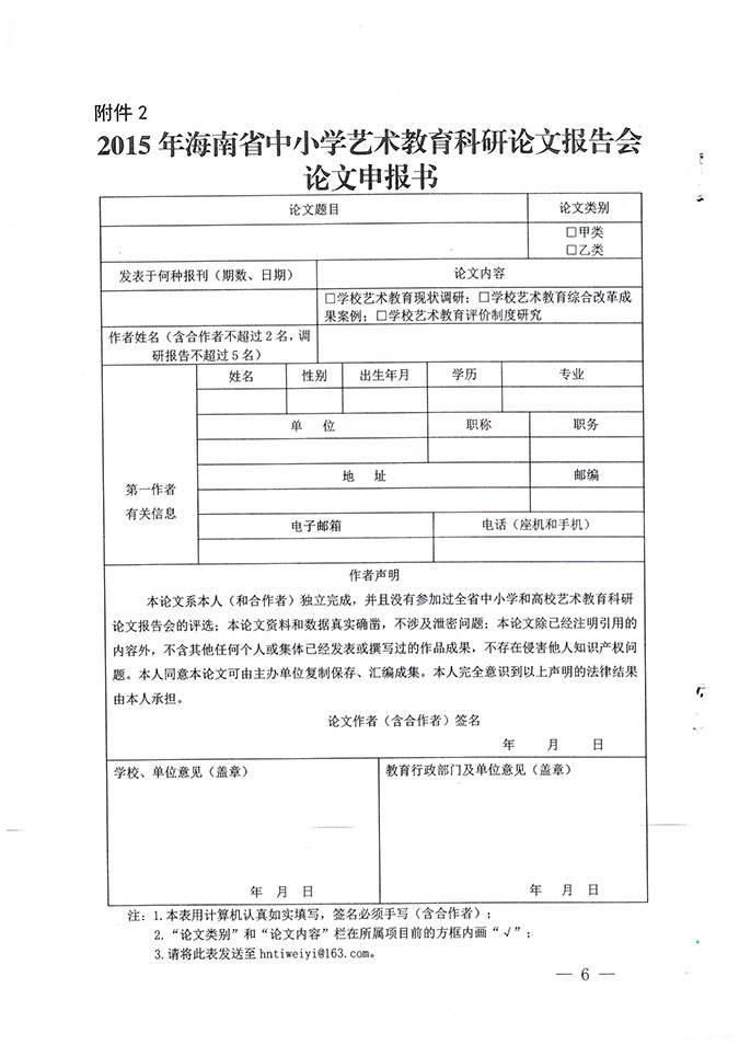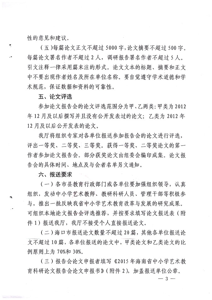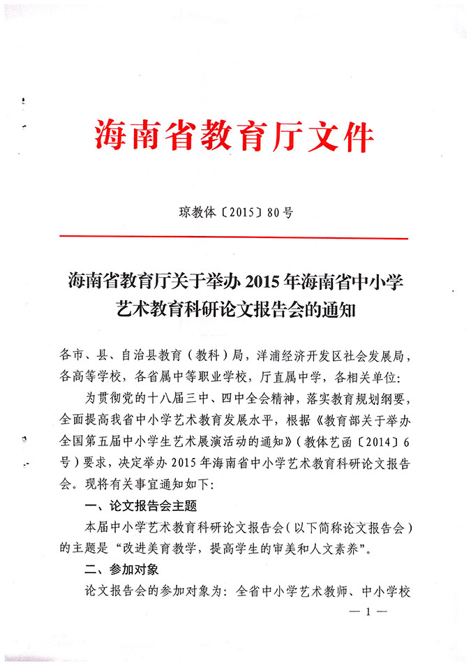 海南省教育厅关于举办2015年海南省中小学艺术教育科研论文报告会的通知