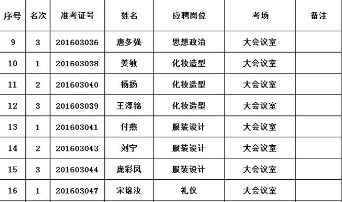 海南省文化艺术学校2016年招聘教师专业岗位面试合格笔试人员名单