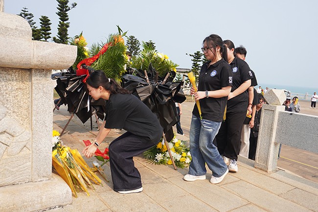 学院师生代表在澄迈玉包港登陆作战纪念碑开展清明祭奠英烈活动