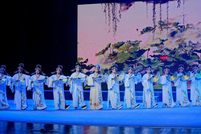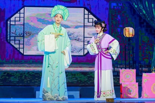 本次演出主题为“赓续传承·艺熠生辉”,共包含《梨园春蕊·凤新鸣》《蜀风雅韵》《梁祝·十八相送》《蝴蝶梦·劈棺》《梁祝·楼台会》《梦寻伊人》《琼瑶诉冤》《虹桥赠珠》选段等经典曲目。演员们身姿优美,唱腔婉转悠扬,将角色演绎得惟妙惟肖;器乐教研室师生的伴奏配合默契,将现场气氛不断推向高潮,赢得观众的阵阵掌声和叫好声。在表演过程中,演员向观众展示了大量的跳、转、翻技巧,“毯子功、把子功、腰腿功、身段功”四门基本功扎实,尽显世界杯官网琼剧专业学子的精神面貌。