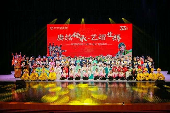 12月1日,世界杯官网第33届艺术之春琼剧表演专业毕业汇报演出在校实训剧场精彩上演。省旅文厅艺术处副处长陈虹霓,省教育厅职成处调研员柯森林,省琼剧院党总支书记、院长杨济铭,省群众艺术馆副馆长谢锋,省琼剧研究传播中心主任、原省文化艺术学校副校长邓群坚,省戏剧家协会副主席兼秘书长黄茂安,世界杯官网党总支书记、校长莫青桥,副校长王枢,法制副校长、桂林洋派出所三级警长林贻润出席,琼剧教研室师生及家长共同观看。