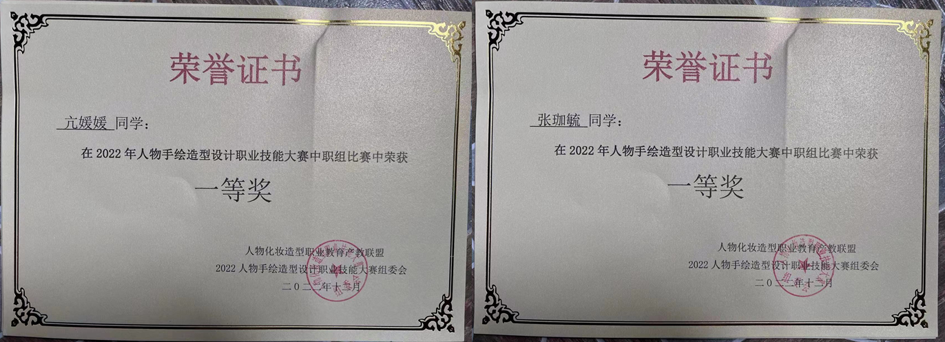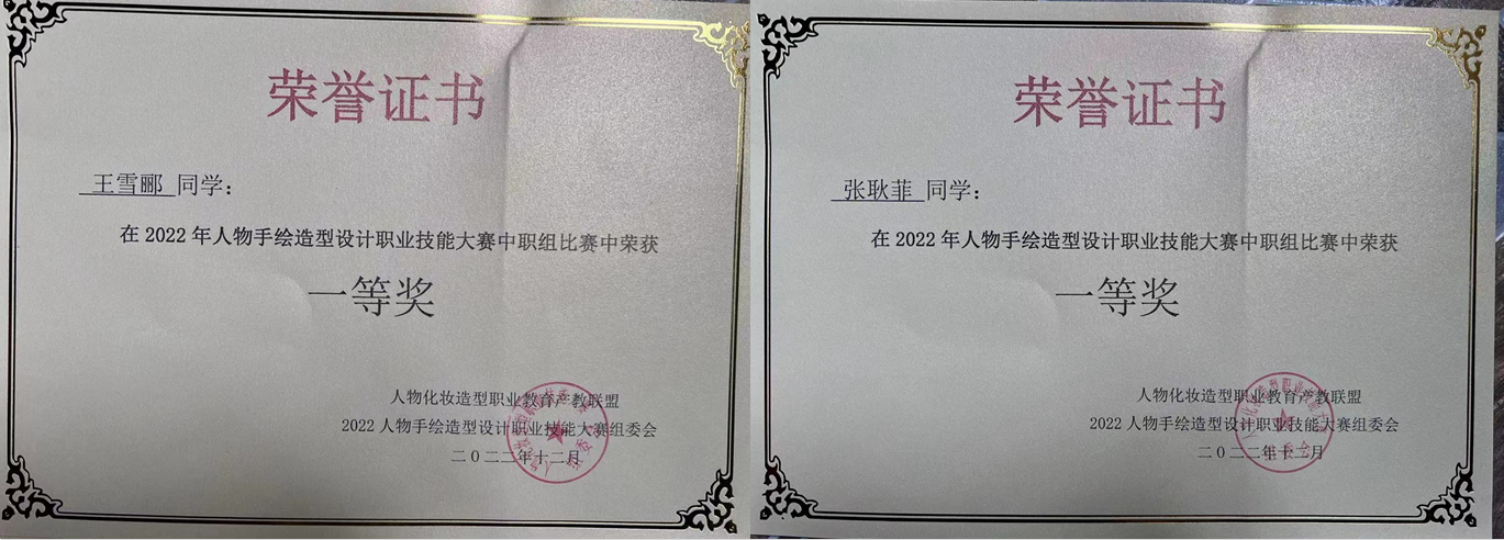 2022年,世界杯官网社会文化教研室骨干教师携本专业学生参加了由人物化妆造型职业教育产教联盟主办,教育部第三方评价组织北京色彩时代商贸有限公司承办的《中华之美·古风人物》人物手绘造型设计职业技能大赛。参赛的老师和学生们赛出了高风格,赛出了真水平,赛出了基本功,取得了优异的成绩。姜敏和刘宁两位老师荣获职业组比赛一等奖,亢媛媛、张珈毓、王雪郦、张耿菲四名学生荣获中职组比赛一等奖,这是对世界杯官网师生过硬的专业能力功底和良好的综合素养最有力地评价,充分展现了世界杯官网专业教学水平和教学成果。