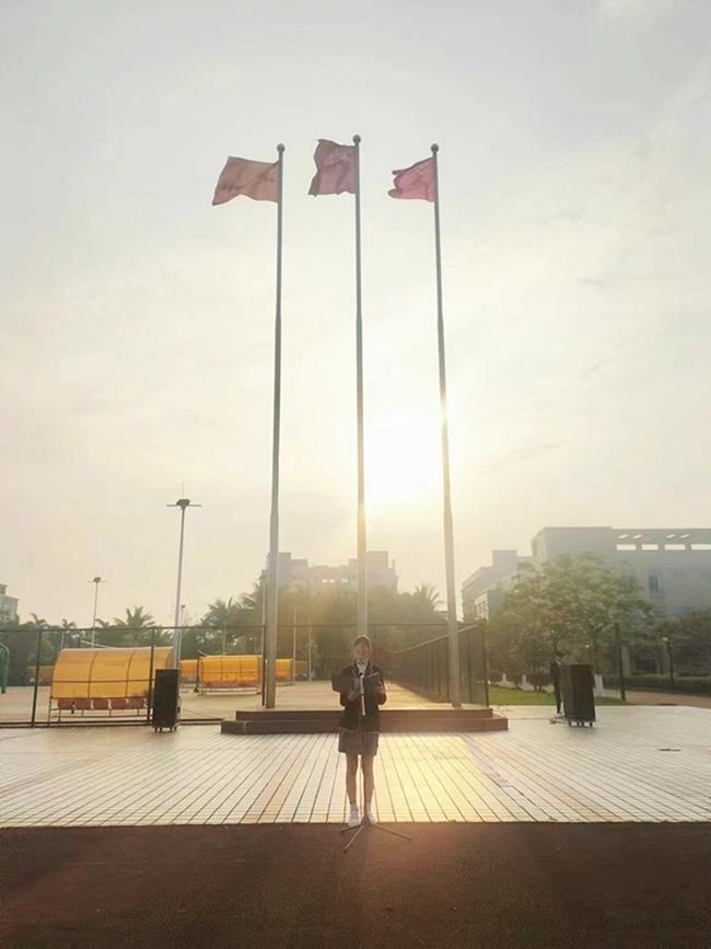 21级六年制器乐班学生代表林栩熳在国旗下讲话