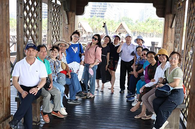 退休干部职工们在逸龙湾栈桥“打卡点”合影留念