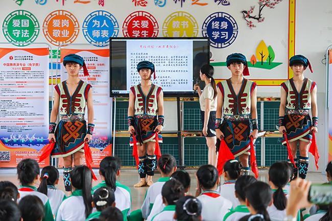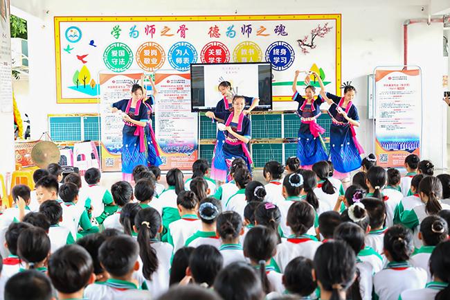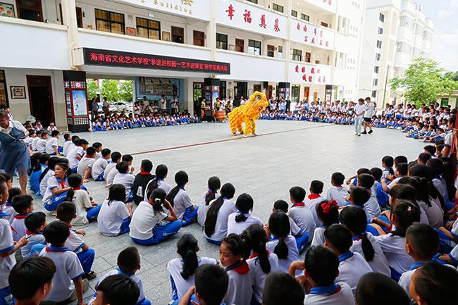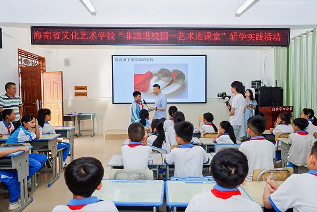 世界杯官网师生在屯昌县新兴中心小学开展非遗艺术教学表演活动
