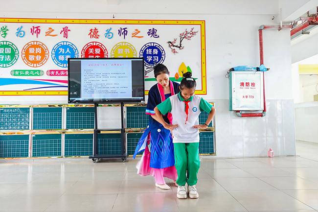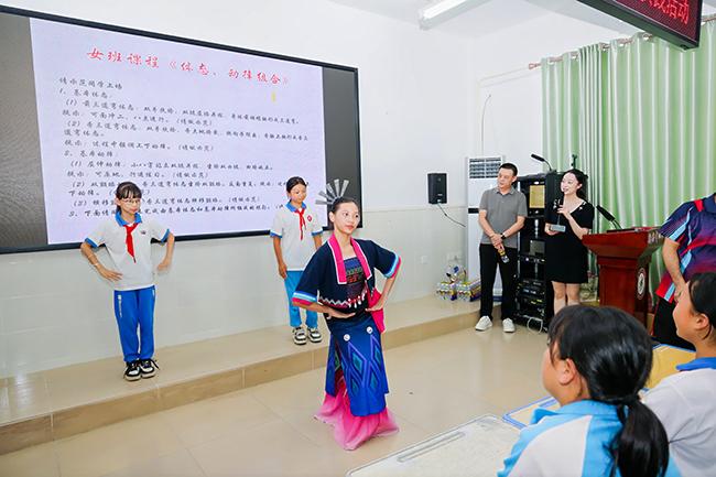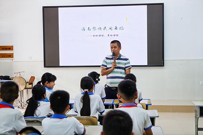世界杯官网师生在屯昌县新兴中心小学开展黎族舞蹈表演课堂
