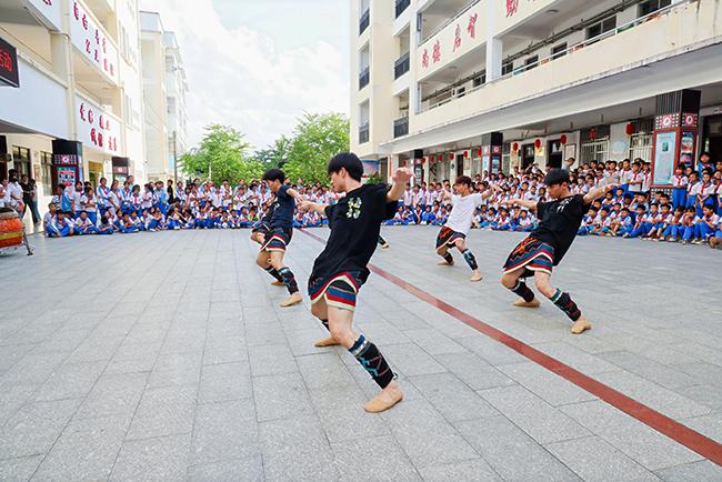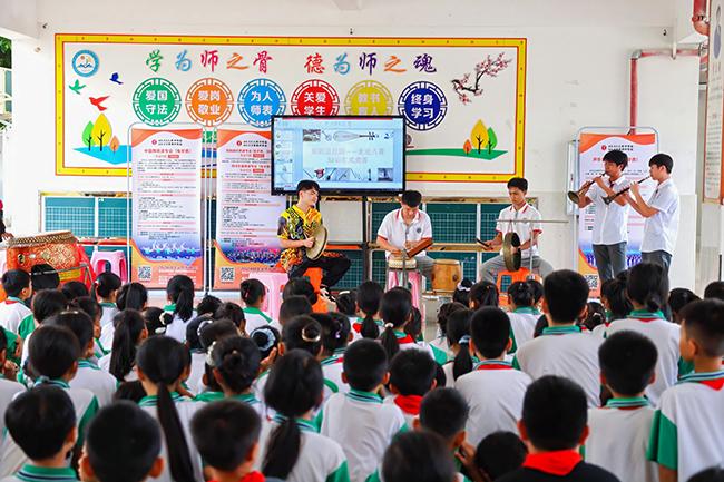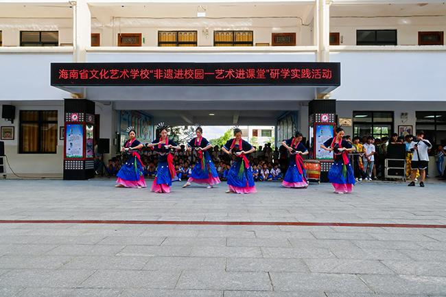 世界杯官网师生在屯昌县红旗中学开展非遗艺术教学表演活动