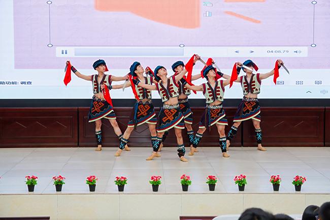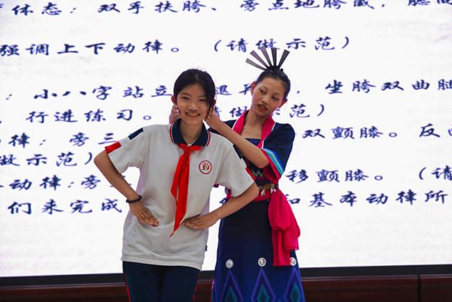 世界杯官网师生在屯昌县红旗中学开展黎族舞蹈表演课堂