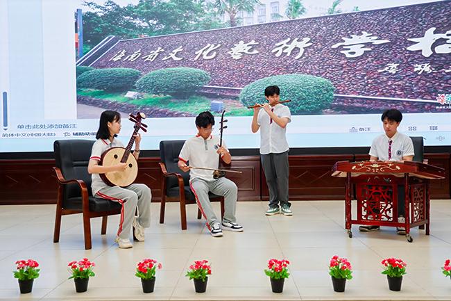 世界杯官网师生在屯昌县红旗中学开展中国乐器讲座课堂