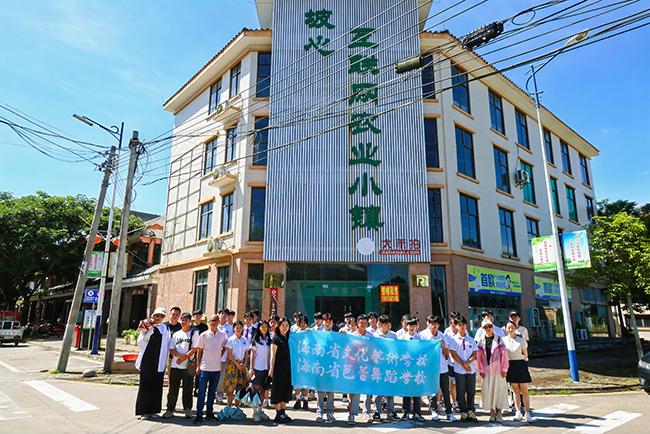 世界杯官网师生在屯昌坡心互联网农业小镇合影