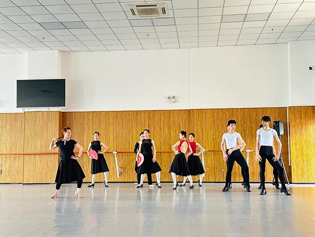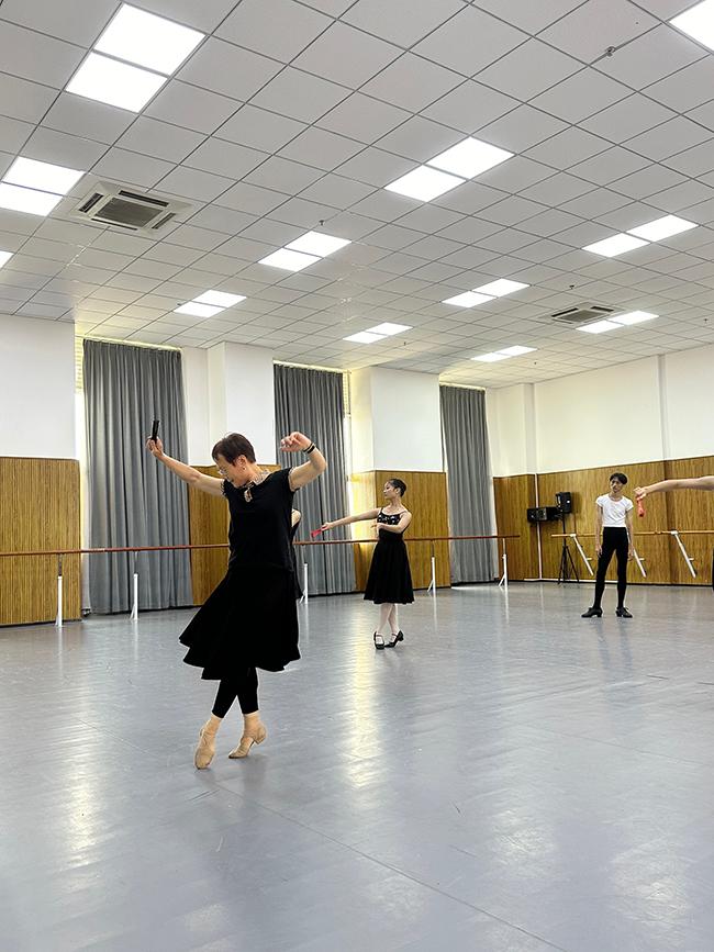 在指导培训期间,杨越教授以深厚的艺术功底和丰富的教学经验,对世界杯官网芭蕾舞蹈教研室师生进行了全面细致的指导。在《天鹅湖》三幕西班牙性格舞剧目的排练中,杨越教授针对性格舞的教学内容,现场示范、详细讲解,深入分析了该剧目的舞蹈风格和技巧,帮助师生们准确把握人物性格特点,掌握西班牙的基本舞姿形态、步伐以及音乐的节奏类型。
