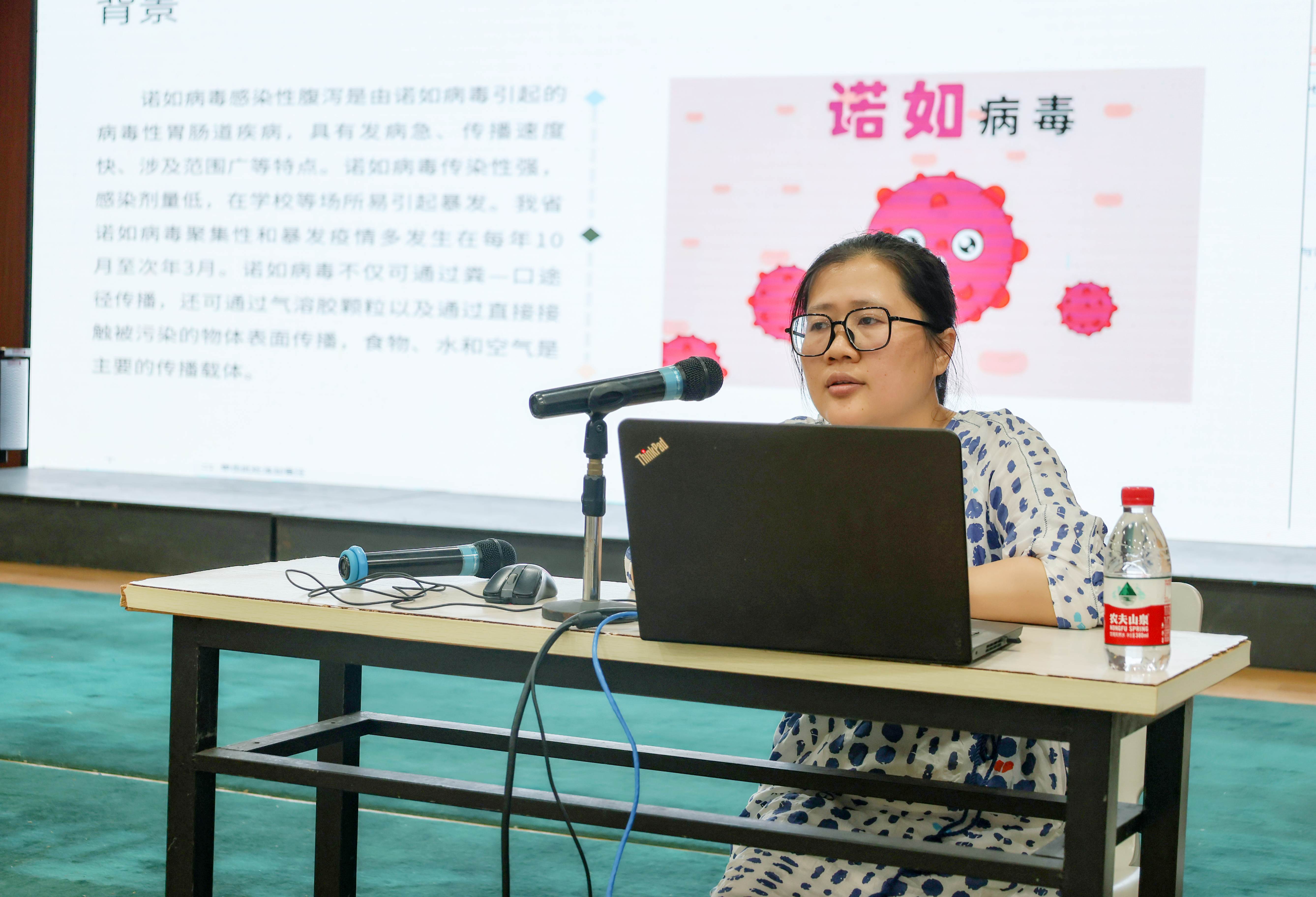 讲座现场,海口市美兰区疾病预防控制中心孔风鹤医生用深入浅出的语言向大家详细介绍了流行性感冒、诺如病毒感染性疫情这两种校园常见传染病的疾病定义、发病机制、日常防控和疫情防控措施等知识。孔医生强调,眼下正值甲流、诺如病毒高发期,学校作为学生高度集中的场所很容易发生聚集性疫情。同学们在人员密集地方要戴口罩、勤洗手、勤换衣物、注意饮食均衡,在学习和生活中要养成良好的生活习惯,做到勤开窗通风,适度锻炼,规律作息,有效预防常见传染病,如果出现不适症状要及时尽早就诊治疗。