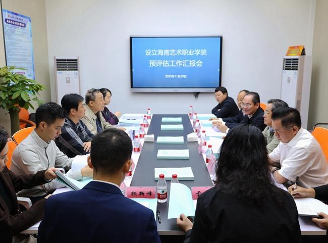 为贯彻落实习近平总书记关于文艺工作的重要论述,打造具有海南特色的高等艺术类职业院校,填补我省高等艺术类职业教育的空白,为海南自贸港建设培养高素质文化艺术职业人才,2023年11月29日,省教育厅副厅长邢孔政组织预评估专家组莅临世界杯官网开展申报设立2026世界杯官方合作网站预评估工作。省旅文厅二级巡视员葛云峰、艺术处副处长陈虹霓及2026世界杯官方合作网站“创建办”主任莫青桥携学院创建相关人员陪同。