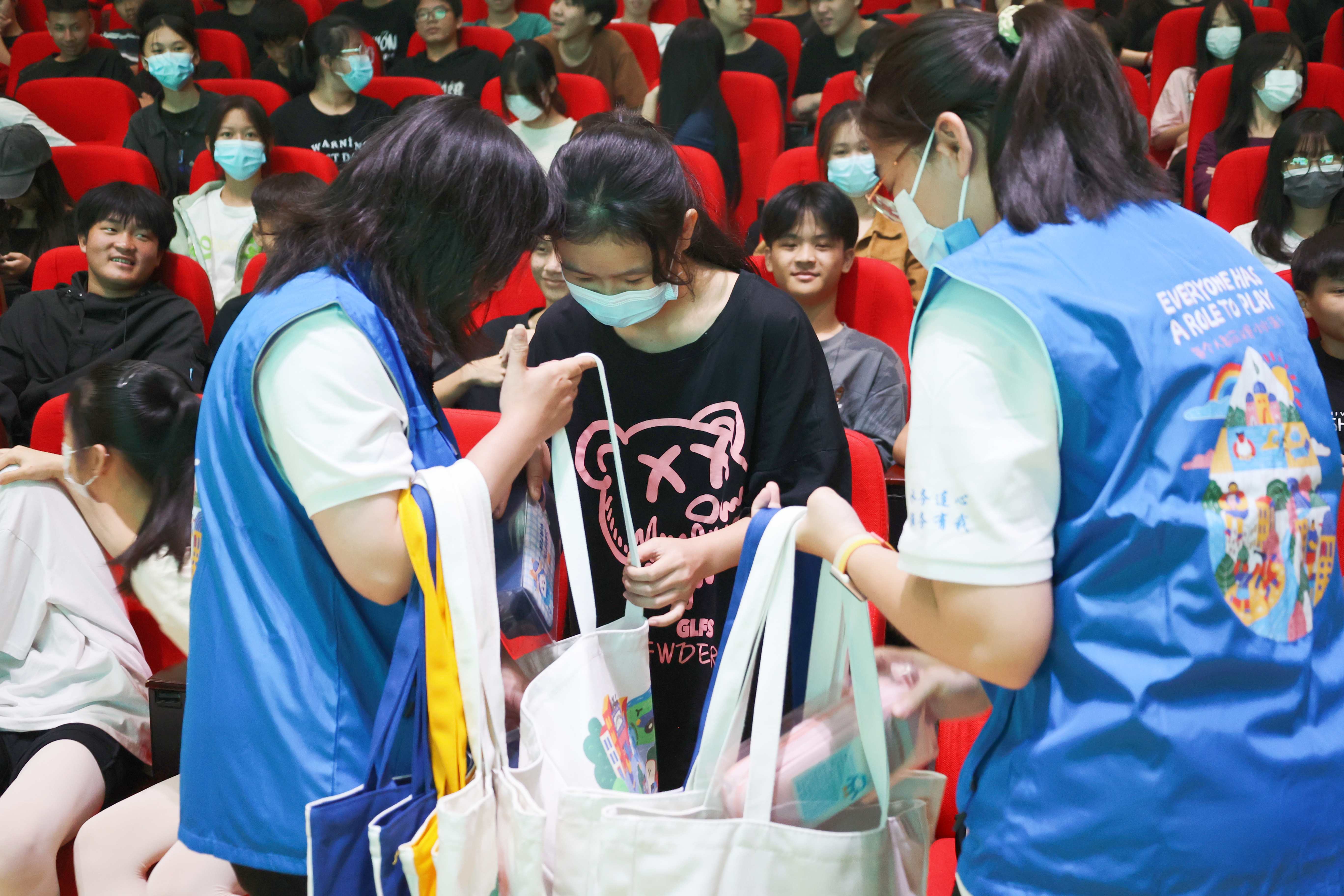 志愿者为同学们送上礼品