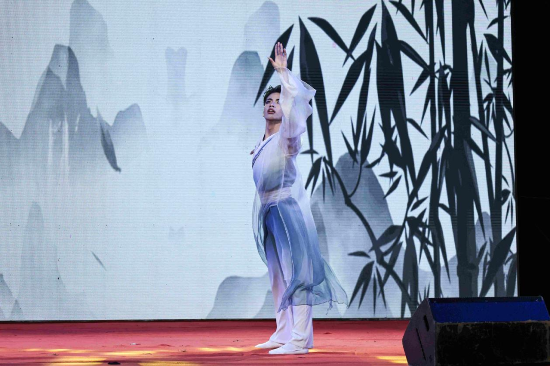 演出在开场琼剧《梨园秋实》中拉开了帷幕,翻转腾跃的武戏表演,瞬间点染现场气氛,独唱《美好新时代》唱出新时代青春学子的自豪骄傲与激扬澎湃,国乐合奏《盛世国乐》奏出了中华盛世的泱泱气派,独舞《清风颂》《觅光》片段舞姿曼妙动人,群舞《喜鹊喳喳喳》《象山水月》《醉春风》欢快灵动、古典飘逸,琼剧折子戏《珍珠塔·跌雪》、琼剧表演经典唱段《梁山伯与祝英台·十八相送》、琼剧《李代桃疆》将经典琼剧的魅力展现得淋漓尽致,演出在歌曲《春风十万里》礼赞新时代的音乐声中圆满落幕,现场掌声阵阵,热烈喝彩经久不绝。