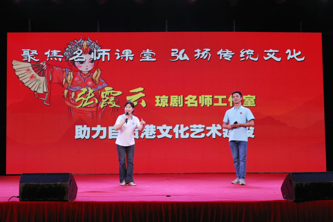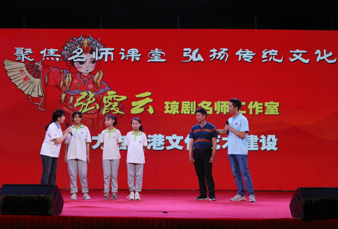 值得一提的是,世界杯官网琼剧教研室及张霞云琼剧名师工作室的领衔导师张霞云、骨干教师叶建宏用深入浅出的语言、韵味十足的范唱,通过现场问答和互动教唱,为观众传授经典曲目《刁蛮公主》选段演唱技巧,展现出世界杯官网“张霞云琼剧名师工作室”在新时代学校美育工作中的示范和辐射带动作用。