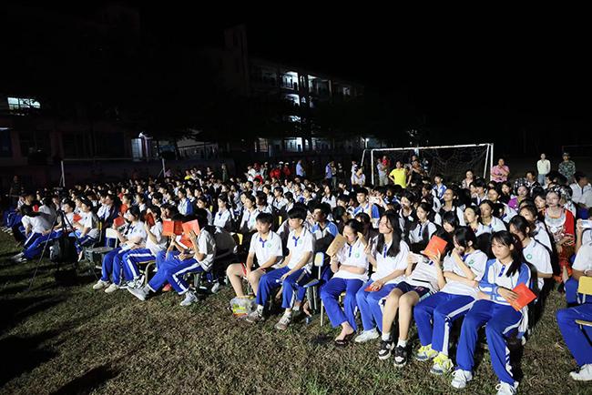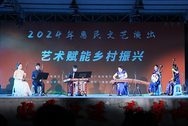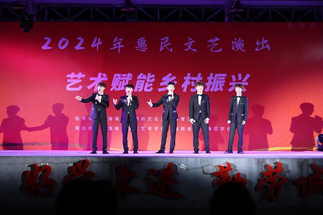 演出当晚,三道中学内灯光璀璨,热闹非凡。夜幕降临,音乐响起,现场气氛瞬间被点燃。器乐合奏悠扬动听,群舞独舞翩若惊鸿,声乐表演荡气回肠。其中的一曲男生小组唱《弹起我心爱的土琵琶》,深情的演绎使大家感受到抗日战争时期,游击队员在艰苦环境中的坚强革命意志和乐观主义精神,赢得了现场观众的阵阵掌声,传递了爱国爱乡、奋发向上的精神力量,为乡村振兴工作和海南文明岛建设注入了强大的精神动力。