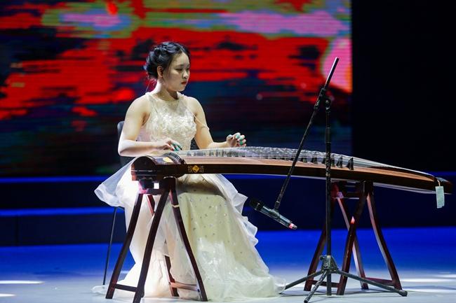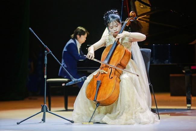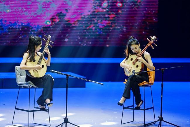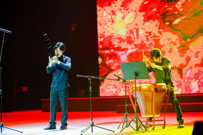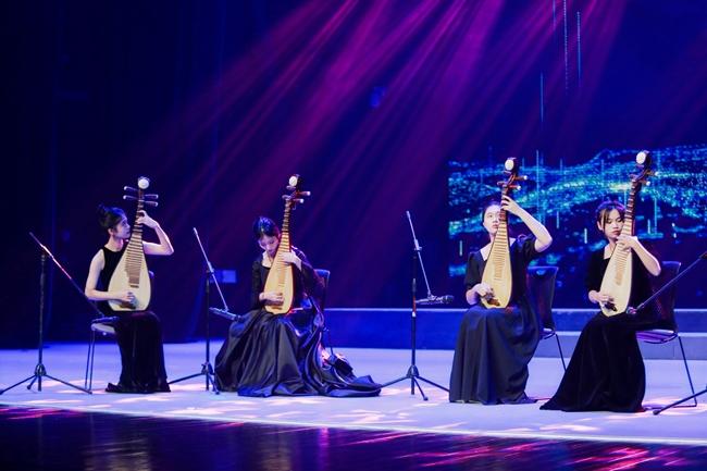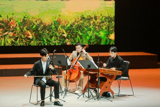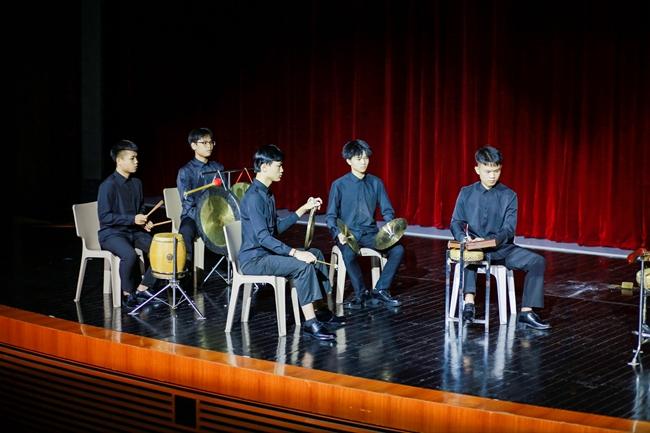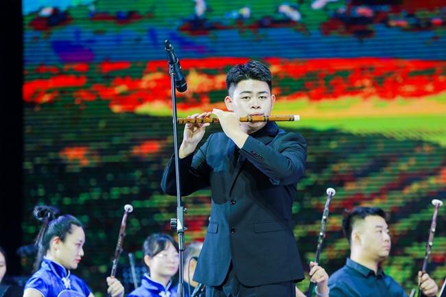 本次演出主题为“盛世中华 砥砺奋进”,以一曲民族管弦乐合奏《我的祖国》拉开序幕,铿锵有力的演奏迅速调动起了现场观众的情绪。活动中,演奏人员通过演奏打击乐合奏《动鼓情》、笛子独奏《牧民新歌》、钢琴独奏《皮黄》、二胡独奏《翻身歌》、大提琴独奏《巴赫第一首》、笙独奏《秦王破阵乐》等多种乐器表演形式,使乐曲在实训剧场久久响彻,将现场气氛推向了高潮。台上的演奏者们以高超的演奏技巧、默契的配合,以及对作品的完美诠释,让现场观众感受到器乐演奏的艺术魅力。
