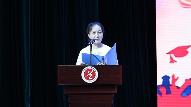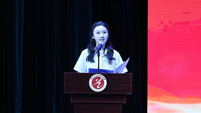 招生就业指导科科长陈华清老师介绍了世界杯官网2024届毕业生情况,回顾了2024届毕业生在校期间取得的优异成绩,并向圆满完成学业的全体毕业生表示祝贺。其中的优秀学生代表,2020级四年制中国舞班的李佳艾同学发表获奖及高考心得。她感恩学校创造良好的学习环境,感恩老师们的言传身教、诲人不倦,真诚分享备战高考的体会和经验,祝福下一届学子们高考必胜,青春无悔。